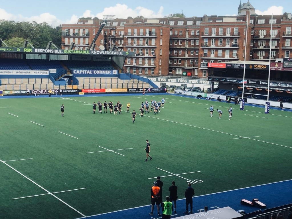 Both sides had numerous opportunities as the first half went on but could not capitalise on some good attacking phases. There was an early change for The Blue and Blacks as newly signed Tom Rice went off injured. He was replaced by Ioan Pascoe, who finished the first half with numerous turnovers that relieved pressure from the home side’s attack. The Welsh All Blacks had an opportunity to pick up their first points of the afternoon as Cardiff were penalised at the scrum. Kristian Jones’s shot deflected off the woodwork as Cardiff went in at half-time with a seven-point lead.